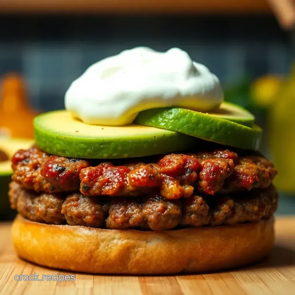 For variations, you can spice up the recipe by adding cayenne pepper or using a different type of meat, like ground turkey or chicken. If you want to switch up toppings, try grilled mushrooms or caramelized onions. You can also substitute Greek yogurt for sour cream in the avocado cream if needed.