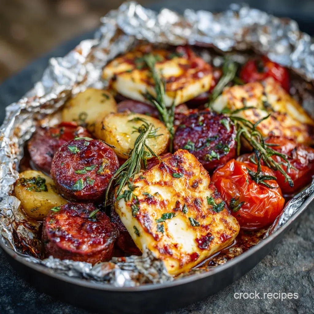 Omit the sausage and substitute the halloumi with extra firm, pressed tofu or large cubes of pre-steamed butternut squash for a vegan option. Season the tofu aggressively with smoked paprika and extra herbs before wrapping to achieve that robust, savoury campfire flavour profile.